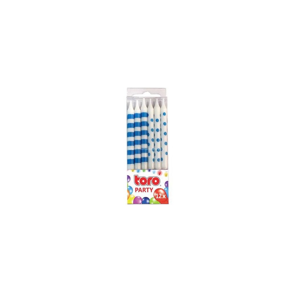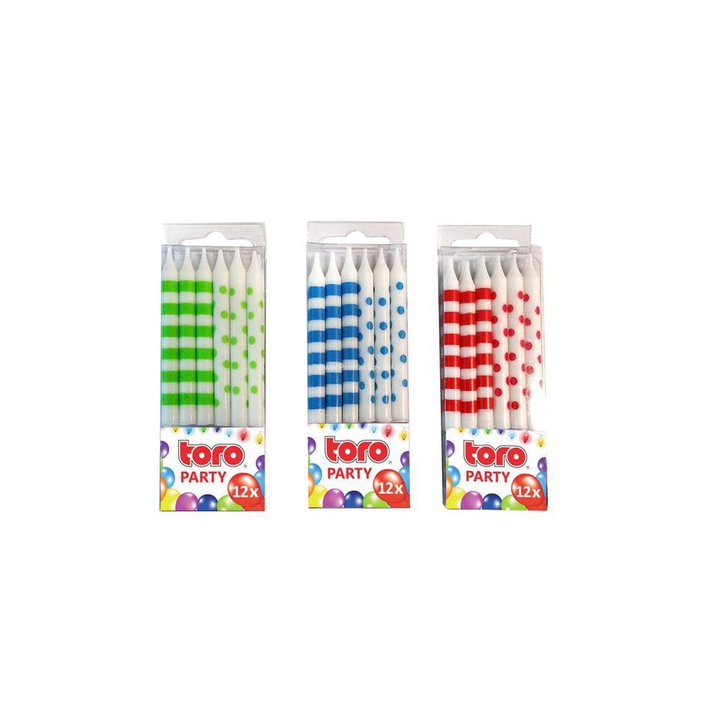 Svíčky s jemnými motivy puntíků a proužků jsou ideální na narozeninový dort pro malé i velké oslavence.