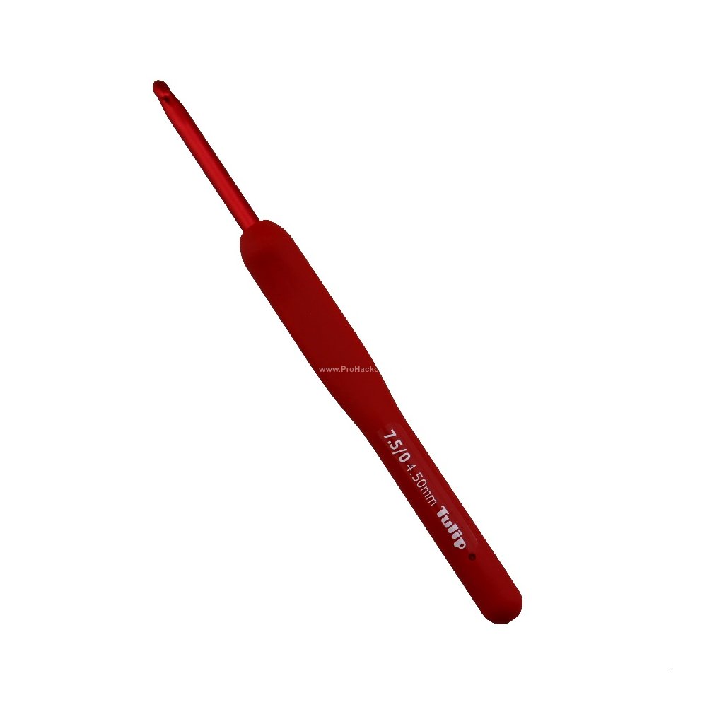 Háčky Tulip Etimo Red "soft grip" mají měkkou silikonovou rukojeť a hladký háček. Matné červené tóny neodrážejí světlo a jsou šetrné k vaším očím a tím zajišťují dlouhé hodiny příjemného háčkování.
