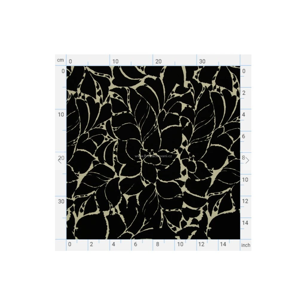 Motiv nepůsobí realisticky, ale spíše graficky a dekorativně a díky tomu je moderní a nadčasový. Kontrast světlé a tmavé barvy dodává látce výraznost i eleganci, takže se skvěle hodí jak na každodenní nošení, tak i na výraznější, elegantní kousky.