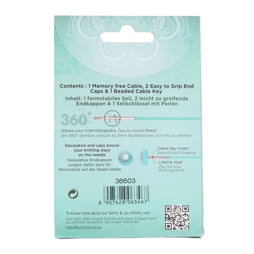 Vyměnitelná lanka z kolekce Knitpro Mindful jsou flexibilní a odolná. Spojení mezi jehlicí a lankem je hladké a plynulé, bez zachycování příze.